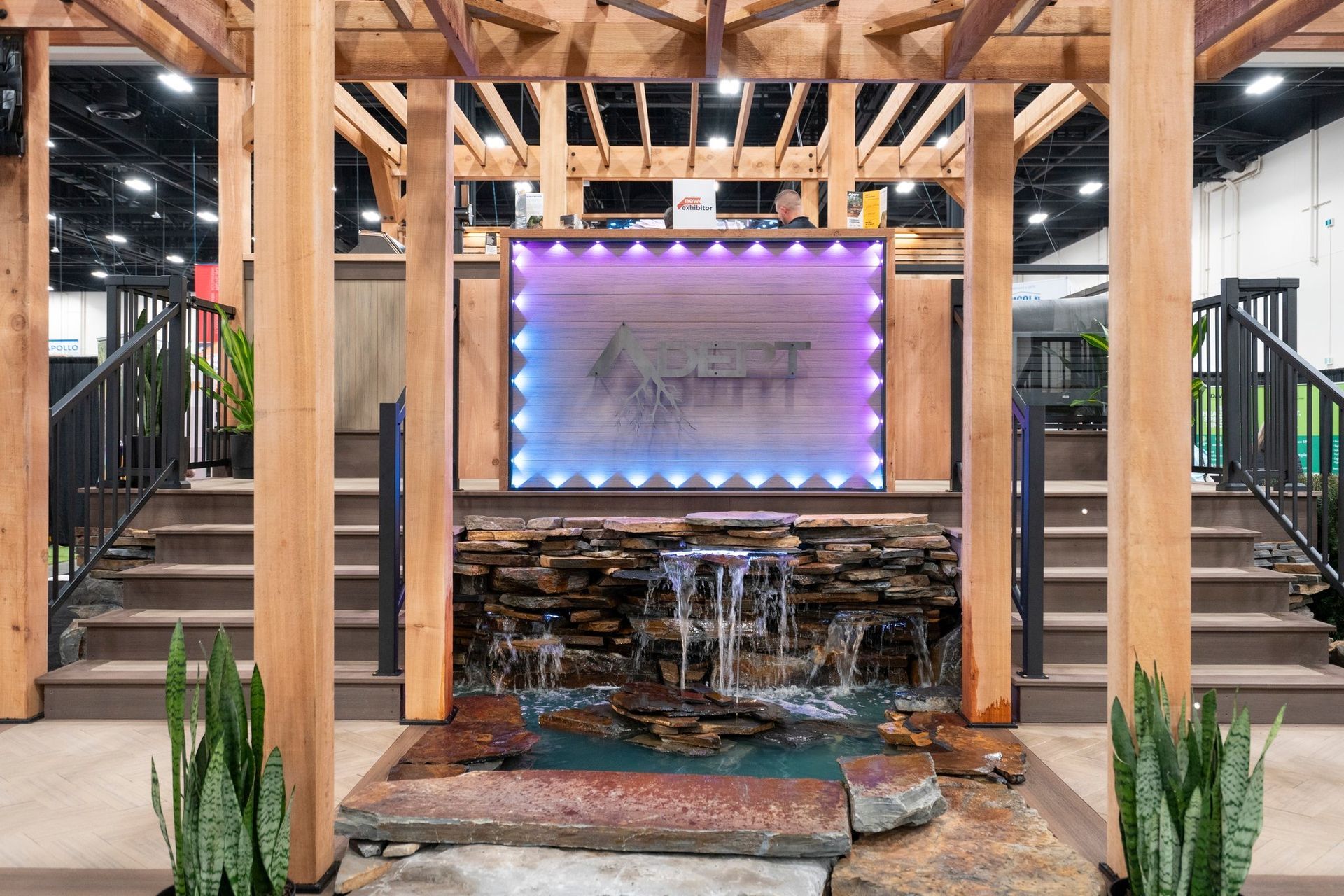 Entering our first home+garden show with a stand out pergola design featuring a custom water feature, railings, two stairways, beer taps, outdoor bbq, retractable weatherproof tv & outdoor seating. Our team spent over 600 hours curating this space. The breathtaking booth was turning heads all weekend. Receiving attention for it’s quality craftsmanship, the outdoor design left many dreaming of their next backyard evolution with Adept. Check out our Design process here.
